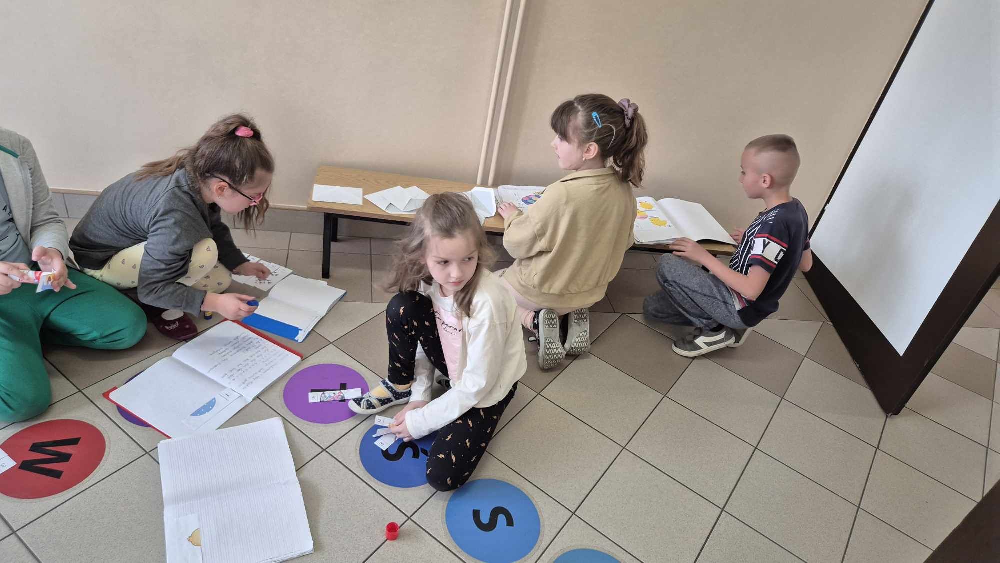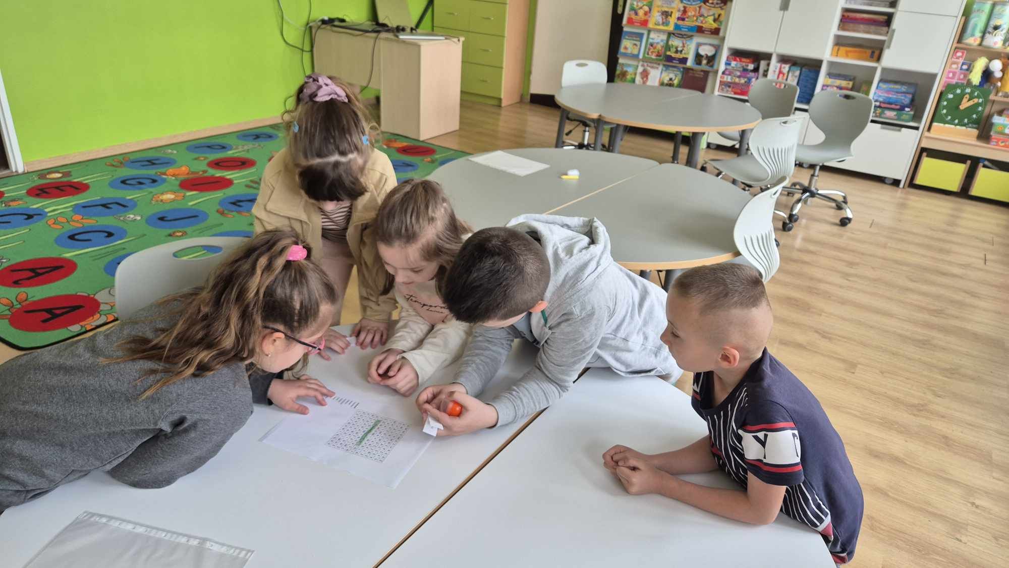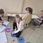 Zadania czekały na nich w różnych miejscach: w klasie, sali terapeutycznej oraz na korytarzu. Było dużo do zrobienia! 🧩 Uczniowie układali wielkanocne puzzle, rozwiązywali zagadki, wykreślanki i łamigłówki matematyczne 🧠✨ A do tego ekscytująca konkurencja z rzutami piłkami! 🎯