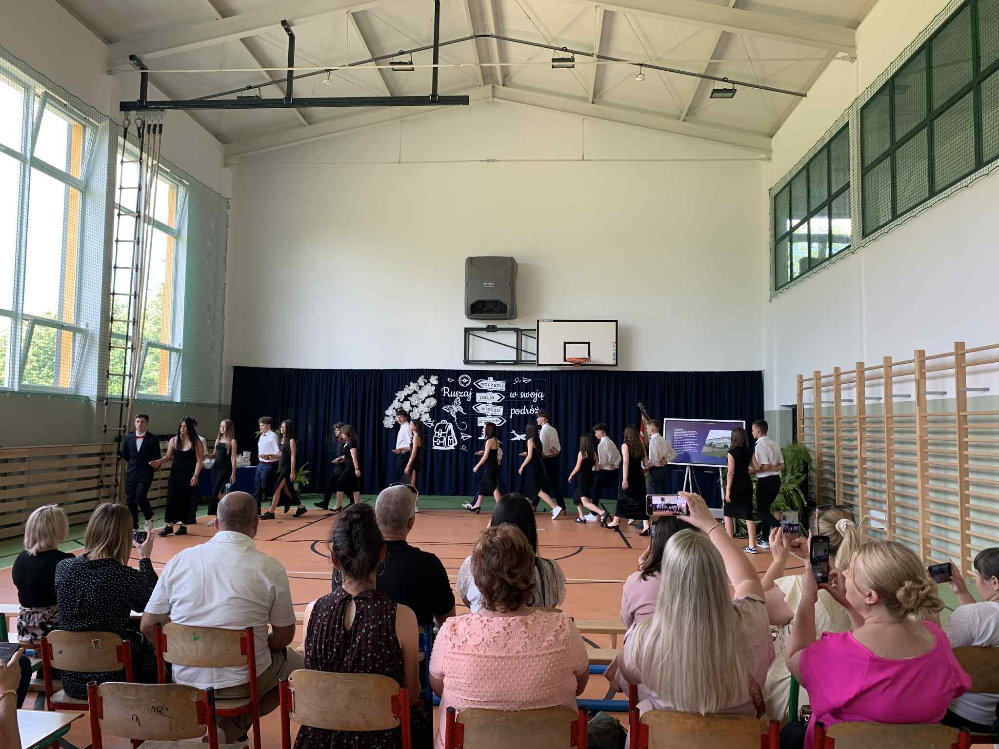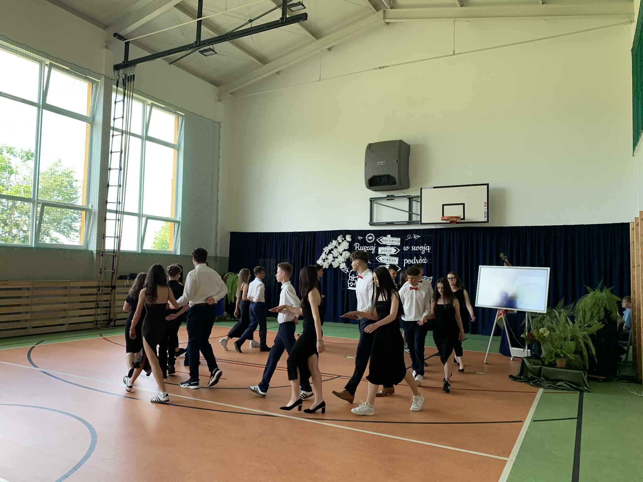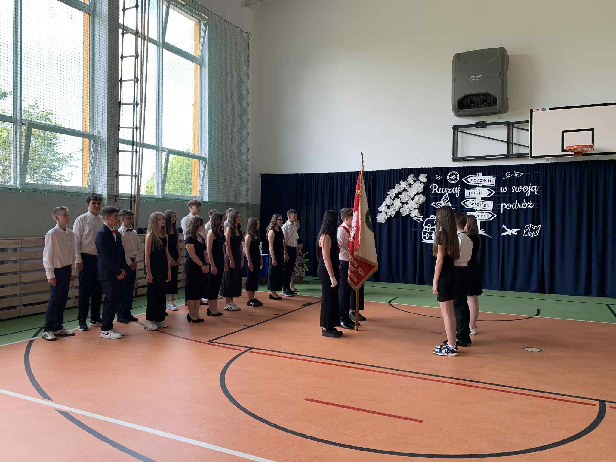 Uczniowie rozpoczęli wydarzenie dostojnym polonezem, który jak co roku poruszył serca zgromadzonych. Następnie odbyło się uroczyste przekazanie sztandaru uczniom klasy 7 – symboliczne przekazanie wartości i tradycji szkoły.