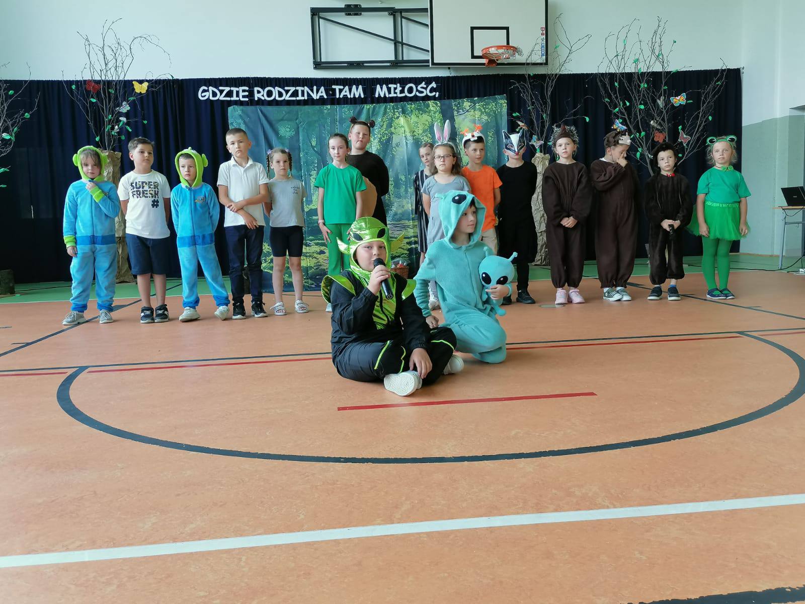 Rodzice naszych uczniów z przyjemnością oglądali swoje dzieci odtwarzające role Ufoludków, zwierząt i beztroskich dzieci, które chcą ratować naszą planetę i chorego przyjaciela.