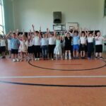 W tym samym czasie na sali gimnastycznej odbywały się konkurencje dla pozostałych chętnych: kręcenie hula hop, rzut woreczkami do celu i bieg z jajkiem.